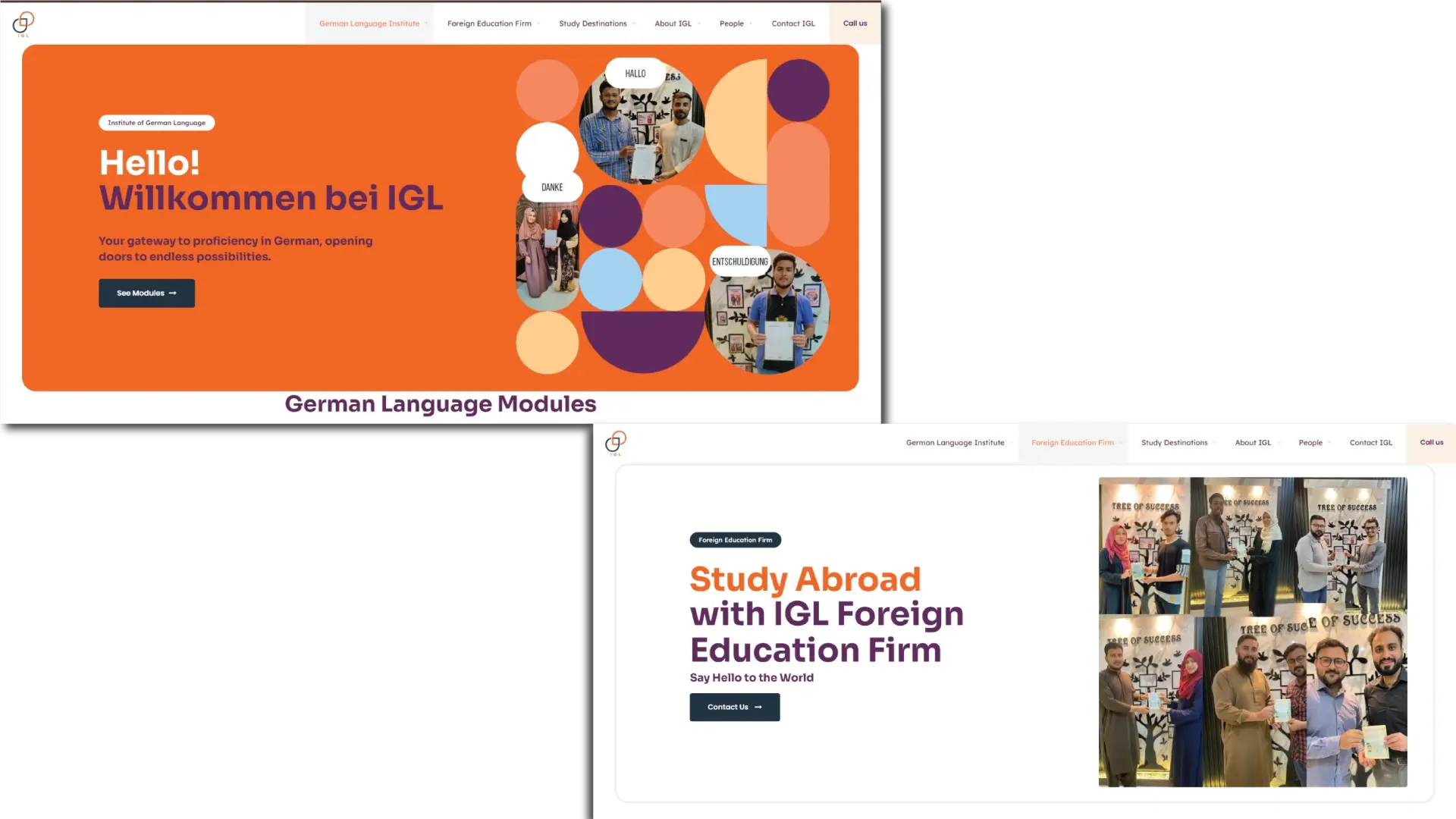 As IGL has 2 business, Institute of German Language & Foreign Education Firm so it was a task to combine both in the same website